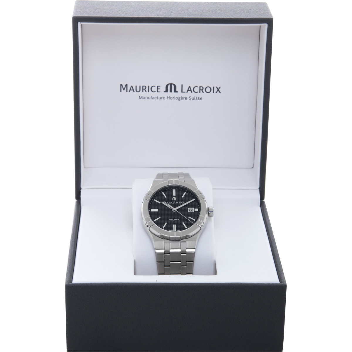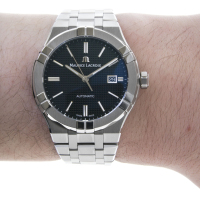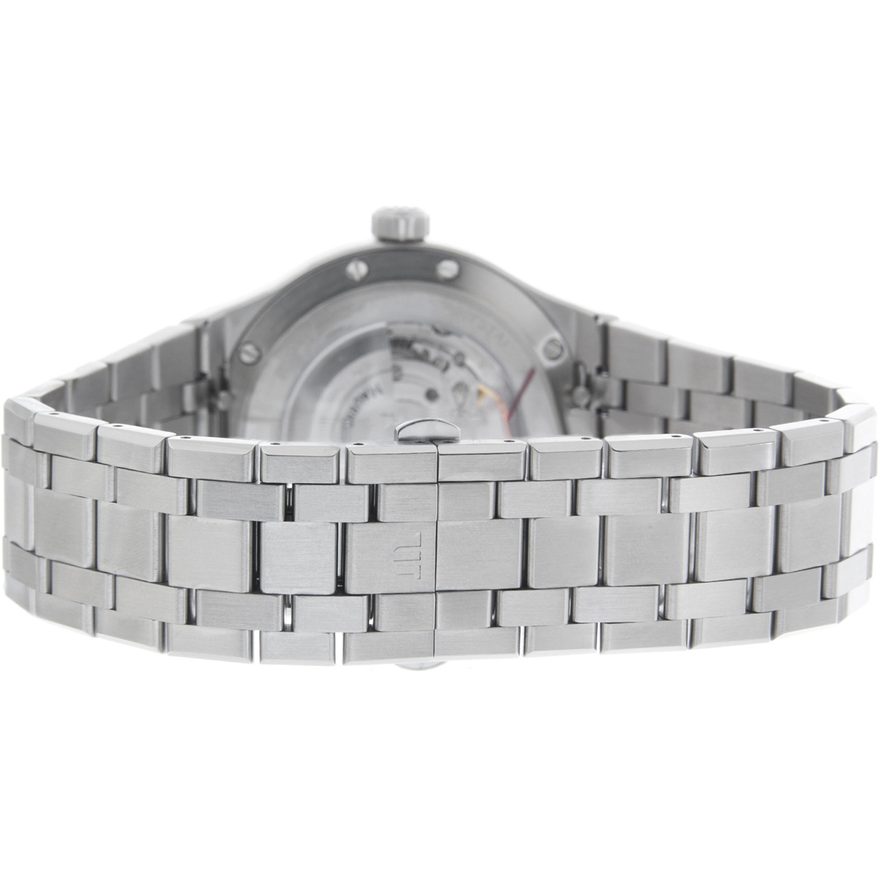 Корпус: Корпус и безель из матовой/полированной нержавеющей стали. Черный циферблат украшен гильоше, серебристые стрелки. Сапфировое стекло с антибликовым покрытием. Водонепроницаемость 200 метров, завинчивающаяся заводная коронка. Размер 42 мм.