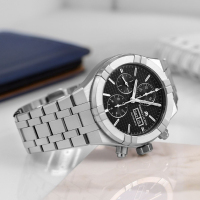 Корпус: Корпус и безель из матовой/полированной нержавеющей стали. Чёрный циферблат украшен гильоше, серебристые стрелки. Сапфировое стекло с антибликовым покрытием. Водонепроницаемость 200 метров, завинчивающаяся заводная коронка. Размер 44 мм.
