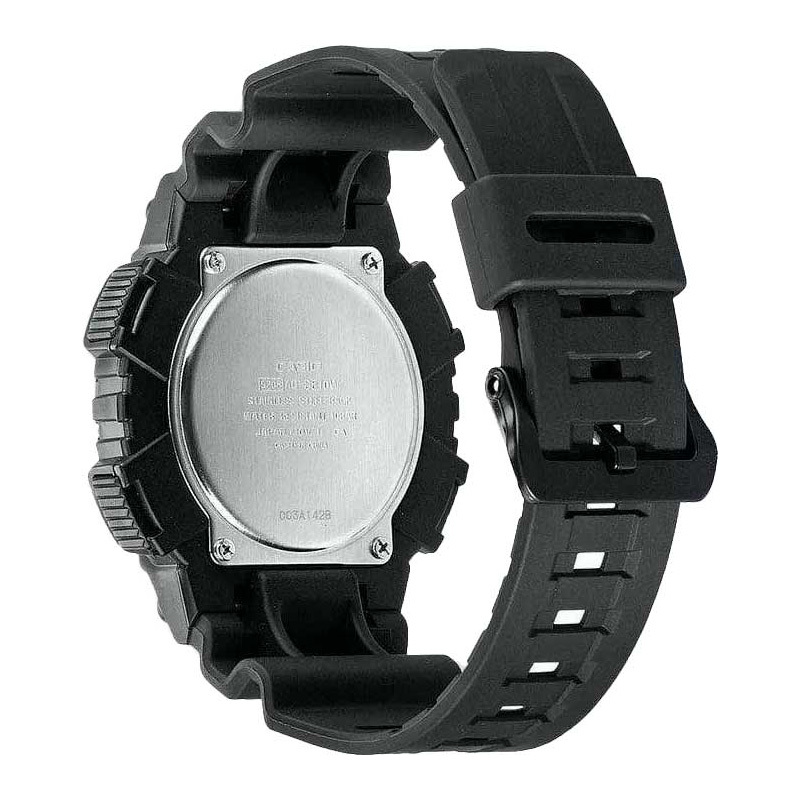Функции: Функция автоматического сохранения энергии (отключает LCD дисплей). Время работы аккумулятора без подзарядки - 10 месяцев, при включенной функции сохранения энергии - 23 месяца. LCD циферблат подсвечивается светодиодом. Цвет подсветки: оранжевый. 12-ти и 24-х часовой формат времени. Секундомер с точностью показаний 1/100с и временем измерения 1ч. SPLIT-хронограф. Два таймера обратного отсчета времени от 5с до 100мин с устанавливаемым количеством повторов от 1 до 10. Мировое время – 48 городов (31 часовой пояс), всемирное координированное время (UTC). Функция включения/отключения летнего времени. 5 будильников. Календарь автоматический: число, день недели, месяц, год (до 2099г). Шесть языков отображения дня недели: английский, португальский, испанский, французский, немецкий и итальянский. Функция включения/отключения звука.