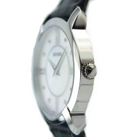 Корпус: Корпус из нержавеющей полированной/матовой стали. Перламутровый циферблат с серебристыми стрелками и часовыми индексами, украшен 8 бриллиантами. Сапфировое стекло. Диаметр 34 мм. Водостойкость 50 м.