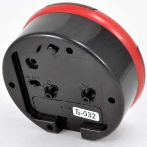 Функции: У будильника пикающий звонок. Включение/выключение звонка будильника осуществляется переключателем, находящемся на задней стороне корпуса. Будильник имеет светодиодную подсветку. Подсветка включается кнопкой, которая расположена на задней стороне корпуса.