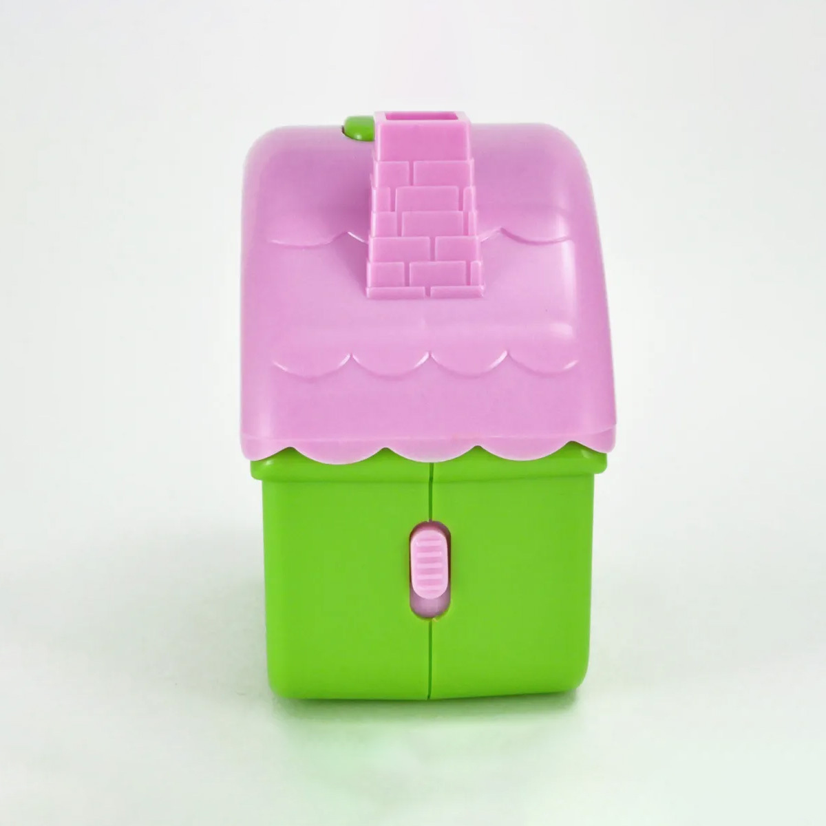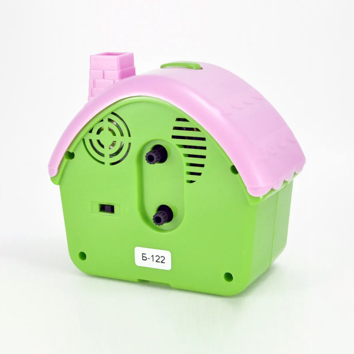 Материал и цвет: Изготовлен из пластика в виде домика. Розозая крыша, сам домик зелёный. Яркий циферблат с арабскими цифрами.