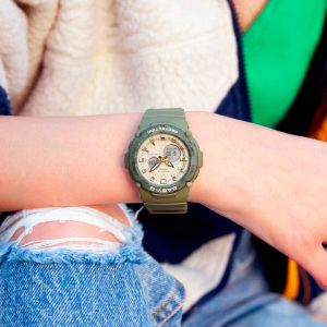 Корпус: Ударопрочный корпус выполнен из полимерного пластика зелёного цвета. Необритовое светонакопительное покрытие обеспечивает длительное послесвечение в темноте даже после кратковременного нахождения на свету. Светодиодная лампа (Super Illuminator) выбираемая продолжительность освещения (1,5 секунды или 3 секунды), послесвечение. Прочное минеральное стекло. Размер корпуса (Д × Ш × В) 46,3 × 42,2 × 13,2 мм. Водонепроницаемость 100 метров.