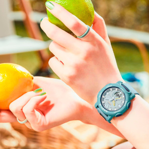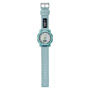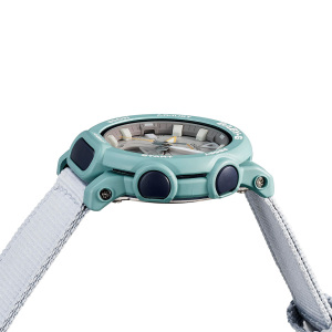 Корпус: Ударопрочный корпус выполнен из полимерного пластика бледно-зелёного цвета. Серый циферблат. Необритовое светонакопительное покрытие обеспечивает длительное послесвечение в темноте даже после кратковременного нахождения на свету. Светодиодная лампа (Super Illuminator) выбираемая продолжительность освещения (1,5 секунды или 3 секунды), послесвечение. Прочное минеральное стекло. Размер корпуса (Д × Ш × В) 46,1 × 41,8 × 13,9 мм. Водонепроницаемость 100 метров.