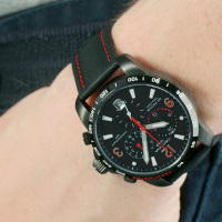Корпус: Корпус из полированной/матовой нержавеющей стали с PVD - покрытием чёрного цвета и тахиметрической шкалой. Чёрный циферблат с серебристыми стрелками (часовая, минутная) и рисками. Часовая и минутная стрелки и риски с люминесцентным покрытием. Сапфировое стекло с антибликовым покрытием. Диаметр 42 мм. Водостойкость 100 м. Система DS.