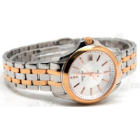 Корпус: Корпус из нержавеющей полированной/матовой стали, безель с PVD - покрытием розового цвета. Металлик циферблат украшен узором "гильоше", три бриллианта на "12 часов". Стрелки и риски золотистого цвета. Сапфировое стекло с антибликовым покрытием. Диаметр 32 мм. Водостойкость 100 м. Система DS.