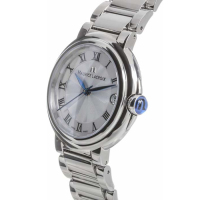 Корпус: Корпус и безель из нержавеющей стали. Циферблат - серебристый гильоше, синии стрелки и чёрные римские цифры. Выпуклое сапфировое стекло с антибликовым покрытием. Водонепроницаемость 30 метров. Размер 32 мм.