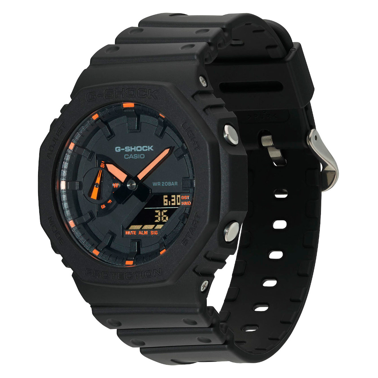 Корпус: Новая серия часов со структурой Carbon Core Guard. Корпус восьмиугольной формы выполнен из высокопрочного мелкодисперсного полимерного материала чёрного цвета, содержащего углеродное волокно, более прочный и, в то же время, более легкий. Оранжевые метки и стрелки со светонакопительным покрытием Neobrite. Двойная подсветка Super illuminator с функцией Afterglow (для подсветки не нужно удерживать кнопку, время послесвечения настраивается 1,5 или 3 сек): одновременно подсвечивается аналоговый циферблат и цифровой дисплей. Размер корпуса (Д × Ш × В) 48,5 × 45,4 × 11,8 мм. Водонепроницаемость 200 метров.