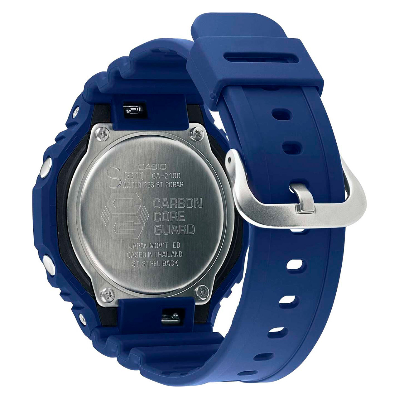 Корпус: Новая серия часов со структурой Carbon Core Guard. Корпус восьмиугольной формы выполнен из высокопрочного мелкодисперсного полимерного материала синего цвета, содержащего углеродное волокно, более прочный и, в то же время, более легкий. Оранжевые метки и стрелки со светонакопительным покрытием Neobrite. Двойная подсветка Super illuminator с функцией Afterglow (для подсветки не нужно удерживать кнопку, время послесвечения настраивается 1,5 или 3 сек): одновременно подсвечивается аналоговый циферблат и цифровой дисплей. Размер корпуса (Д × Ш × В) 48,5 × 45,4 × 11,8 мм. Водонепроницаемость 200 метров.