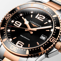 Корпус: Корпус выполнен из высококачественной стали с повышенной устойчивостью к коррозии, поверхности с матовой шлифовкой – сатинированием, полировкой до зеркального блеска с частичным PVD покрытием розового золота. Циферблат чёрного цвета с позолоченными стрелками и рисками. Индексы и стрелки с люминесцентным покрытием по технологии SuperLumiNova®. Стекло сапфировое с антибликовым покрытием. Однонаправленно вращающийся безель из анодированного алюминия, завинчивающиеся задняя крышка и заводная головка. Диаметр 41 мм. Водозащита 300 м.