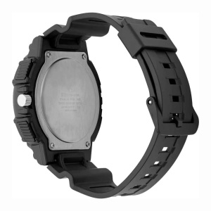 Корпус: Корпус из высококачественной полимерного материала – прочного и долговечного, с малым весом, чёрного цвета. Циферблат с объемной структурой крупными накладными метками. Необритовое светонакопительное покрытие обеспечивает длительное послесвечение в темноте даже после кратковременного нахождения на свету. Выступы корпуса служат защитой для переводной коронки. Задняя крышка из нерж. стали имеет винтовое соединение с корпусом. Габаритные размеры:
