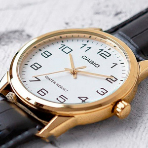 Ремешок: Кожаный ремешок чёрного цвета с классической застежкой.