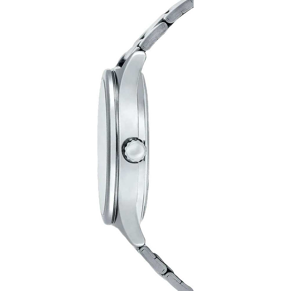 Корпус: Корпус из нержавеющей стали. Белый циферблат с метками в виде арабских цифр. Прочное минеральное стекло обеспечит защиту часов от повреждений. Размер: 38х45,1мм, толщина 9,4мм, вес 93г. Водонепроницаемость: 30 м.