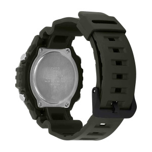 Корпус: Корпус выполнен из полимерного материала зелёного цвета/сталь. Серый циферблат. Акриловое стекло. Габаритные размеры: 47,2x50,8мм, толщина 12,3мм, вес 50г. Водозащита: 100м.