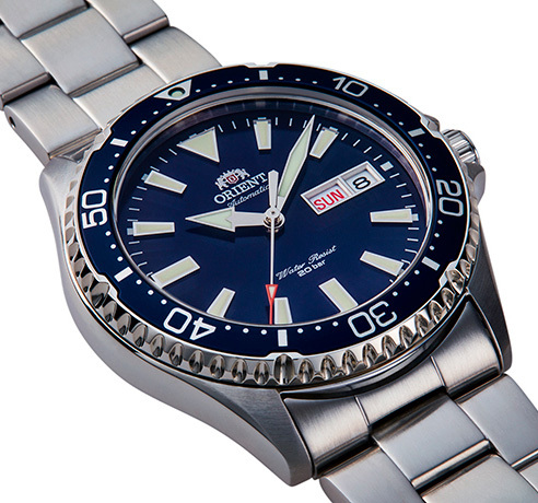 Корпус: Корпус часов выполнен из нержавеющей стали 316L. Минеральное стекло. Синий циферблат. Стрелки серебристого цвета с люминесцентным покрытием, что обеспечивает подсветку в темное время суток. Часы оснащены завинчивающейся заводной головкой для максимальной водонепроницаемости, а также однонаправленно вращающимся безелем с арабскими цифрами. Водозащита 200 метров. Диаметр 42 мм.