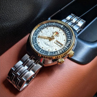 Функции: Индикация часов, минут и секунд при помощи центральных стрелок. Окошко даты и дня недели находится в положении 3 часа. 12-ти и 24-х часовой формат времени отображается на внутреннем вращающимся безеле, который управляется заводной головкой расположенной в положении 4 часа.