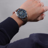 Корпус: Нержавеющая сталь с повышенной устойчивостью к коррозии, поверхности с матовой шлифовкой – сатинированием. Безель с IP - покрытием синего цвета. Циферблат синего цвета. Метки в виде арабских цифр и точек. Стрелки и метки с люминесцентным покрытием SuperLumiNova, которое светится в темноте. Сапфировое стекло устойчивое к появлению царапин, обладающее высокой прозрачностью. Рифленая заводная головка. Диаметр: 43 мм. Водозащита: 100 м.