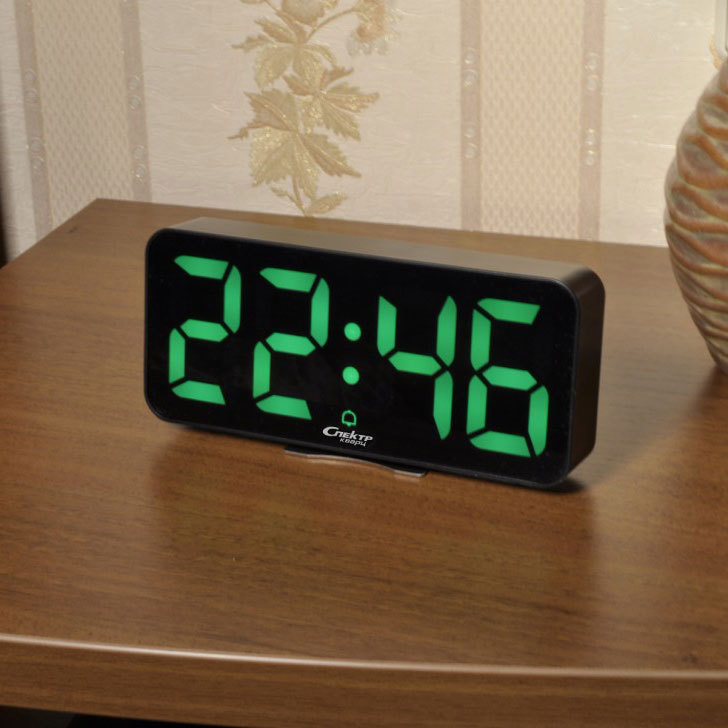Цвет: Цве корпуса чёрный. Данная модель часов имеет зеркальный тип дисплея. Часы имеют яркую светодиодную индикацию зелёного цвета.