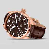 Корпус: Нержавеющая сталь с розовым PVD - покрытием. Циферблат коричневый, стрелки и часовые индексы с люминесцентным покрытием. Диаметр 42 мм. Сапфировое стекло с антибликовым покрытием. Задняя крышка имеет резьбовое соединение с корпусом. Переводная коронка с двойным уплотнителем и винтовой фиксацией для дополнительной защиты от попадания воды. Водозащита 100 метров.