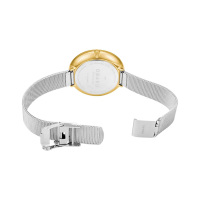 Корпус: Круглый корпус выполнен из матовой нержавеющей стали с IP покрытием цвета желтого золота. Белый циферблат. Минеральное стекло устойчивое к мелким механическим повреждениям. Диаметр 36 мм. Водонепроницаемость 30 бар (30 м).