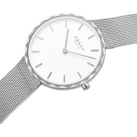 Ремешок: Стильный браслет из нержавеющей стали, выполненный в технике миланского плетения, подчеркивает утонченность дизайна и обеспечивает надежную фиксацию на руке благодаря удобной раскладной застежке. Застежка с системой блокировки.