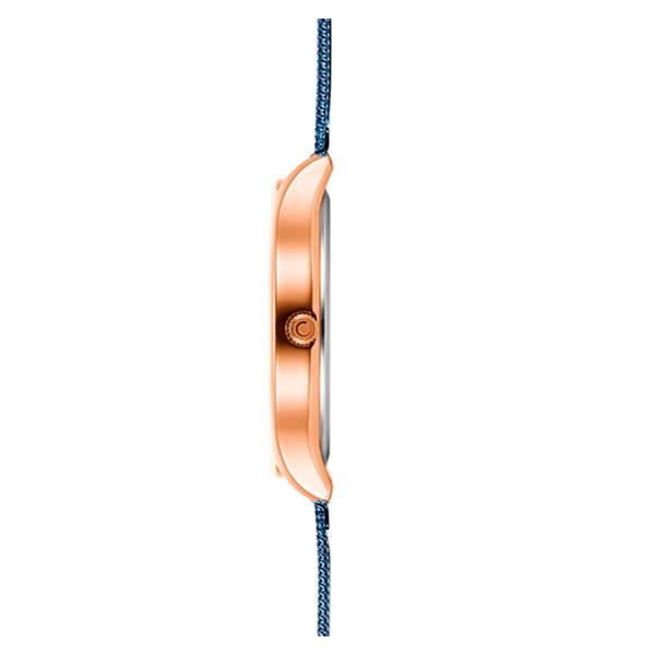 Корпус: Корпус выполнен из нержавеющей стали с IP покрытием цвета розового золота. Синий циферблат. Позолоченные стрелки и часовые индексы. Закаленное минеральное стекло устойчивое к мелким механическим повреждениям. Размер корпуса составляет 40 мм. Водостойкость WR 30 (брызги).