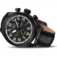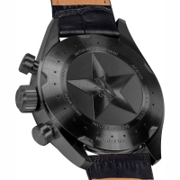 Корпус: Корпус изготовлен из нержавеющей стали 316L, устойчивой к коррозии, отличающейся высокой прочностью и устойчивостью к царапинам. Стойкое к царапинам PVD покрытие черного цвета. Матовый циферблат с зернистой отделкой имеет окраску черного цвета. Дополнительные индикаторы с рельефом в виде тонких концентрических линий. Контрастные часовые метки и цифры в стиле “пилот” выполнены методом печати. Яркие акценты и окраска вспомогательных стрелок желтым цветом обращается к оформлению приборной панели «Аэрокобры». Стрелки и метки на циферблате имеют люминесцентное покрытие позволяющее легко определять время даже в темноте. Сапфировое стекло с антибликовым покрытием защищает циферблат от царапин и обеспечивает отличную читаемость при любом освещении. Переводная коронка с двойным уплотнителем и винтовой фиксацией для дополнительной защиты от попадания воды внутрь корпуса. Переводная коронка увеличенного размера для удобства вращения рукой в летной перчатке с гравировкой в виде буквы «A» - заглавной в названии марки. Задняя крышка имеет резьбовое соединение с корпусом. В оформлении задней крышки использована стилизация под элементы дизайна самолетов Airacobra. Диаметр часов: 45 мм. Водозащита до 10 ATM (100 метров) делает часы подходящими для плавания.
