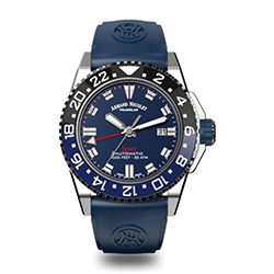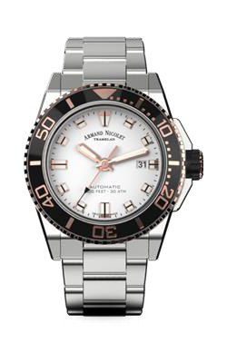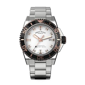 Эти 44-миллиметровые часы имеют толщину 13,0 мм (включая сапфировое стекло). Значимым аспектом новой модели является водонепроницаемость 30 АТМ благодаря толстой привинченной спинке с типичным рисунком рыбы Armand Nicolet и завинченной заводной головке, покрытой удобной резиновой застежкой.