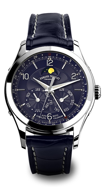 Часы оснащены автоматическим механизмом калибра «AN 9201/2824-2» с функцией полного календаря. На синем циферблате находятся длинные и короткие условные индексы и арабские цифры (2,6,10,12) с люминесцирующими точками, центральные стрелки часов, минут и секунд с люминесцентным покрытием, центральная стрелка (с красным наконечником) указателя дня, лунный календарь, стрелочные указатели месяца и дня недели. Циферблат защищён сапфировым антибликовым стеклом. Ремешок из кожи аллигатора синего цвета снабжён раскладывающейся застёжкой, изготовленной из нержавеющей стали.