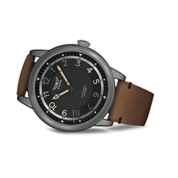 Корпус состоит из трех эквивалентных частей: ободка, корпусного кольца, крышки корпуса. Сочетание сатинирования с отделкой пескоструйкой по последним технологиям, округлых линий и матовых поверхностей – все это передает элегантность военного самолета Douglas Dakota. А изогнутые лапки корпуса – образец элегантности прошлых лет – гарантированно хорошо лежат по руке любого размера.