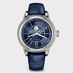 В основе этих часов лежит надежный кварцевый механизм швейцарского производства с обширным запасом хода до 60 месяцев. Он имеет усложнение фазы Луны, которое акцентировано металлизацией и полировкой. С абсолютной точностью день за днем это усложнение позволяет точно синхронизироваться со многими фазами Луны в течение месяца.