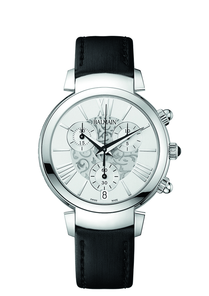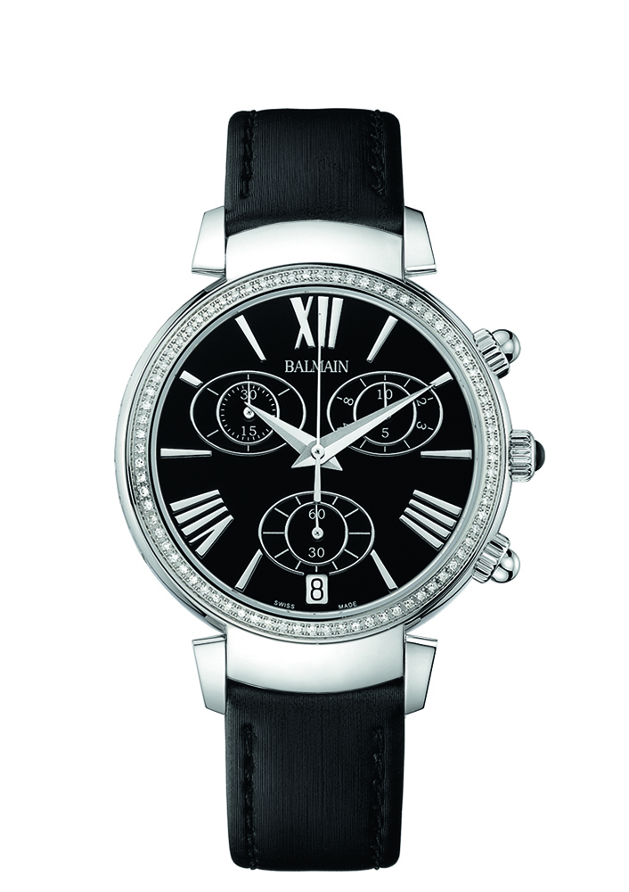 Очередная премьера марки «Balmain» – коллекция женских хронографов, представленная восемью моделями, которые отличаются друг от друга цветом циферблата, наличием бриллиантов в качестве украшения, а также оснащением браслетом или ремешком. Первой обладательницей часов из новой коллекции стала двадцатитрёхлетняя Доминик Риндеркнехт (Dominique Rinderknecht), которая в июне прошлого года была признана самой красивой девушкой страны на конкурсе «Мисс Швейцария-2013».