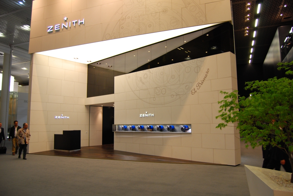 Часовые бренды LMVH — Bvlgari, Hublot, Zenith и TAG Heuer,— теперь собрались в одном месте: каждая марка получила свой собственный стенд, оформленный так, чтобы лучше подчеркнуть ее историю. Например, у TAG Heuer запомнились высокие этажи. Стенд Zenith был затянут в благородные серые цвета – все спокойно, светло и достойно, словно в готовом музее. Впрочем, от музея здесь было не только цветовое решение – одна стена была превращена в «летопись достижений» бренда. На ней разместились всевозможные сертификаты, патенты и изобретения Zenith за всю историю. Всего 2 333 награды в хронометрии. Это очень уместно в свете концепции развития марки: Zenith в настоящий момент увлечен выпуском различных пилотских часов, созданных в соответствии с дизайном пятидесятилетней давности.