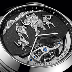 На циферблате новинки знаменитое судно изображено на фоне морского пейзажа. Еще одни сложные часы Hannibal посвящены легендарному переходу Ганнибала через Альпы на слонах.