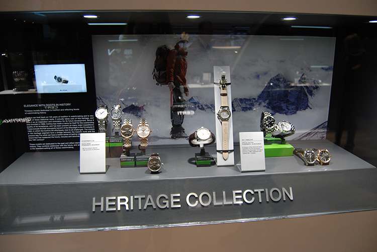 На стенде Сertina обратила на себя внимание DS First Lady Moon Phase – в данном сегменте аналога по функционалу я не вижу. Часы оснащены великолепным кварцевым механизмом Precidrive™ с функциями хронографа и индикацией фаз Луны. Все усложнения заключены в стильный 38-мм корпус с покрытием из розового золота в комбинации с матовыми и полированными поверхностями.