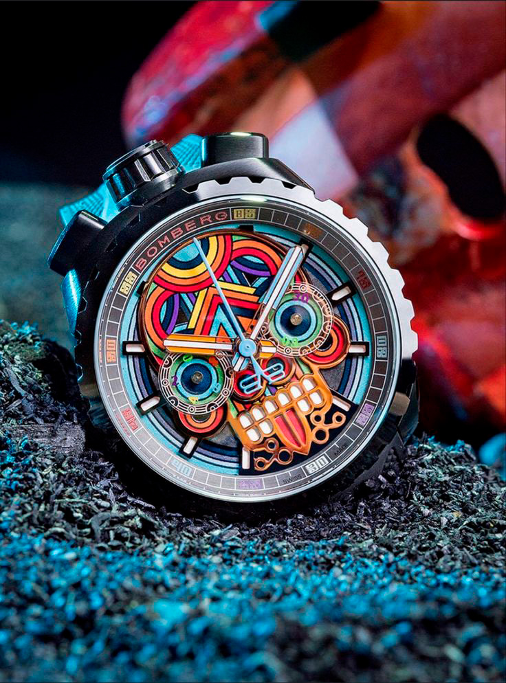 Череп является важным символом для бренда BOMBERG. В латиноамериканской культуре череп всегда ассоциировался с мощью, силой и воинским искусством. Для байкеров череп символизирует единство человечества, вне зависимости от национальности и цвета кожи. В коллекциях BOMBERG символ черепа интерпретируется в различных формах — от растительных мотивов до тату-арта и современной кибер-эстетики. Часы с яркими красками, крупными корпусами и деталями с покрытием superluminova отражают дух независимости и силы.