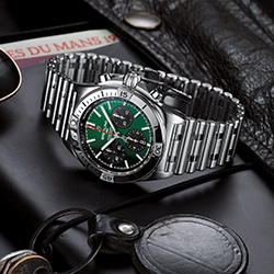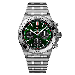 Chronomat Bentley – это результат сотрудничества компании Breitling и знаменитого британского автомобильного бренда. Часы имеют корпус диаметром 42 мм из нержавеющей стали и отличаются зеленым циферблатом с черными контрастными счетчиками хронографа. Они дополнены браслетом Rouleaux из нержавеющей стали с клипсой и украшены гравировкой BENTLEY по окружности прозрачной задней крышки из сапфирового стекла.