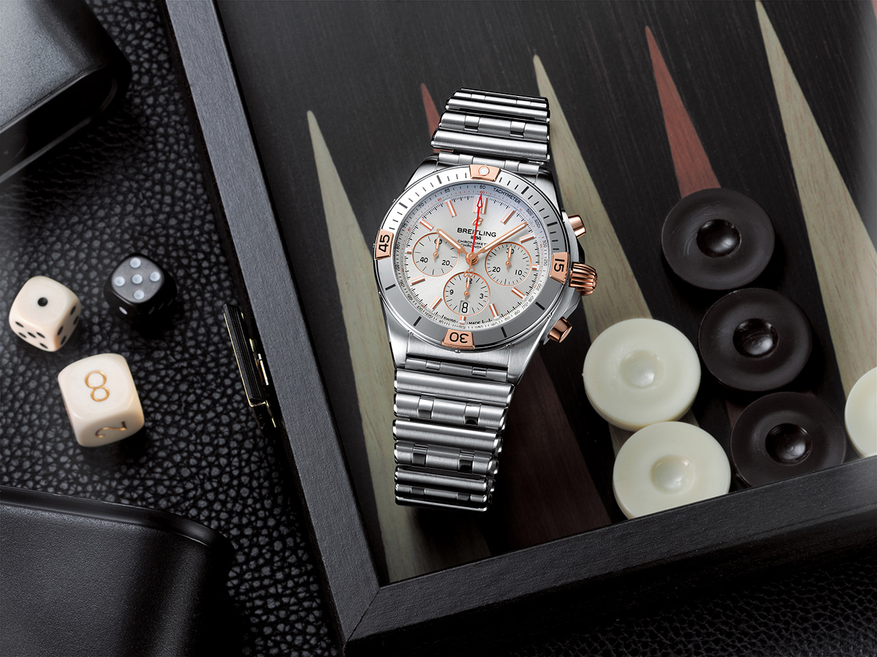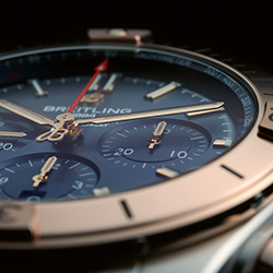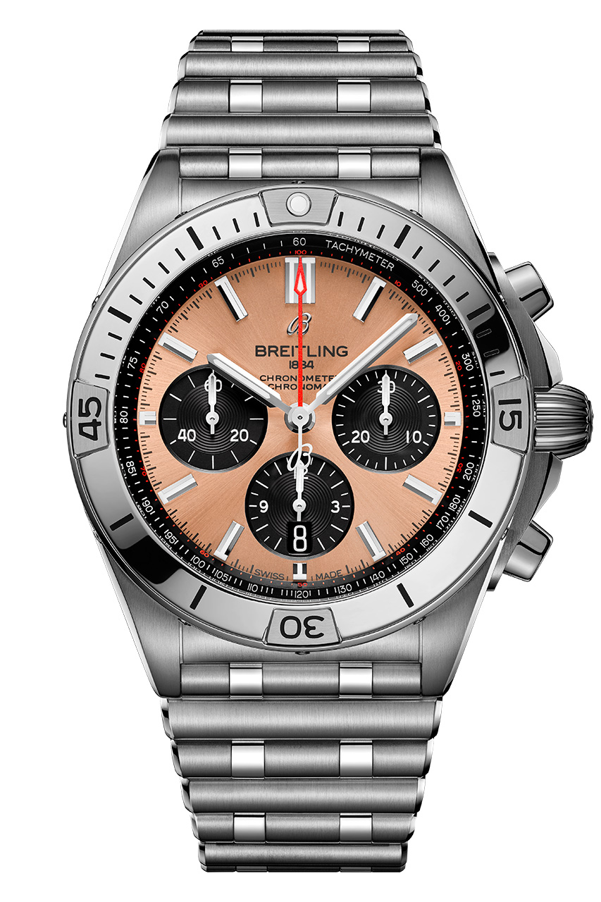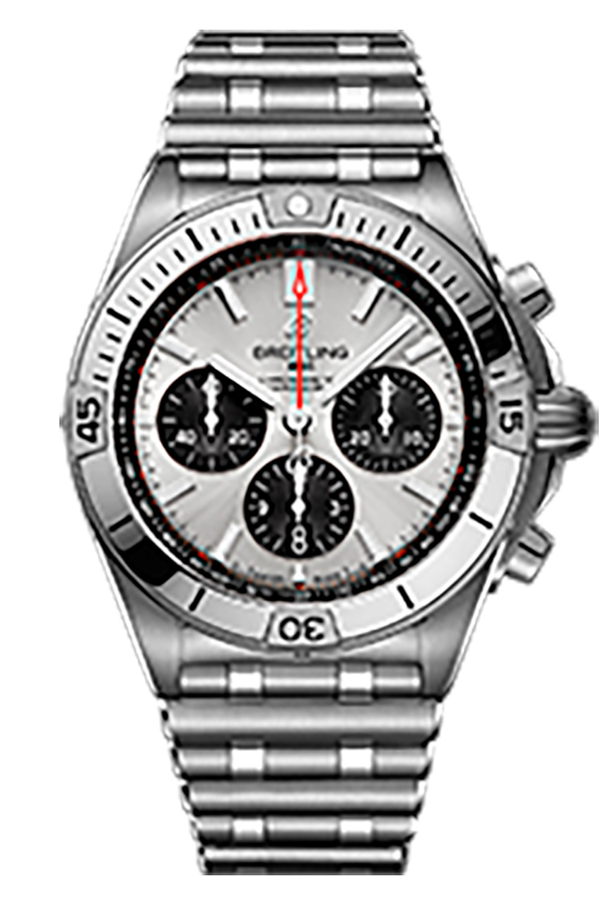 Ценители роскоши не оставят без внимания Chronomat B01 42, оснащенные заводной головкой и кнопками из 18-каратного розового золота, а также безелем с райдерами, цифрами и индексами из 18-каратного розового золота. Часы отличаются серебристым циферблатом с дополнительными циферблатами в тон основному, а также 42-миллиметровым корпусом из нержавеющей стали. Они дополнены браслетом Rouleaux из нержавеющей стали с клипсой.