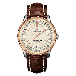 Часы Navitimer 1 Automatic 38 отличаются обновленным декором и оснащены вращающимся в оба направления безелем, который подчеркивает элегантность модели. Легкая в управлении авиационная логарифмическая линейка создает устойчивую ассоциацию с великолепными часами Breitling Navitimer.