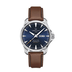 Неважно, какие испытания вам предстоят: часы DS Action Day-Date Powermatic 80 от Certina докажут свою надежность в любой ситуации. Указатель даты и дня недели, расположенный для лучшей считываемости на отметке «3 часа», вносит ясность с первого взгляда. Темно-синий циферблат с гильоше «Солнечные лучи» дополнен акцентами песочного оттенка и стрелками с покрытием SuperLumiNova®. Внутри полированного корпуса из нержавеющей стали с сатинированием диаметром 41 мм заключен современный часовой механизм Powermatic 80 с автоматическим подзаводом и запасом хода до 80 часов. Надежный механизм защищен завинчивающейся заводной головкой и завинчивающейся задней крышкой из сапфирового стекла, сквозь которое можно рассмотреть внутренние детали. Новую модель с водонепроницаемостью до 20 бар дополняет ремешок из телячьей кожи коньячного оттенка с застежкой-бабочкой.