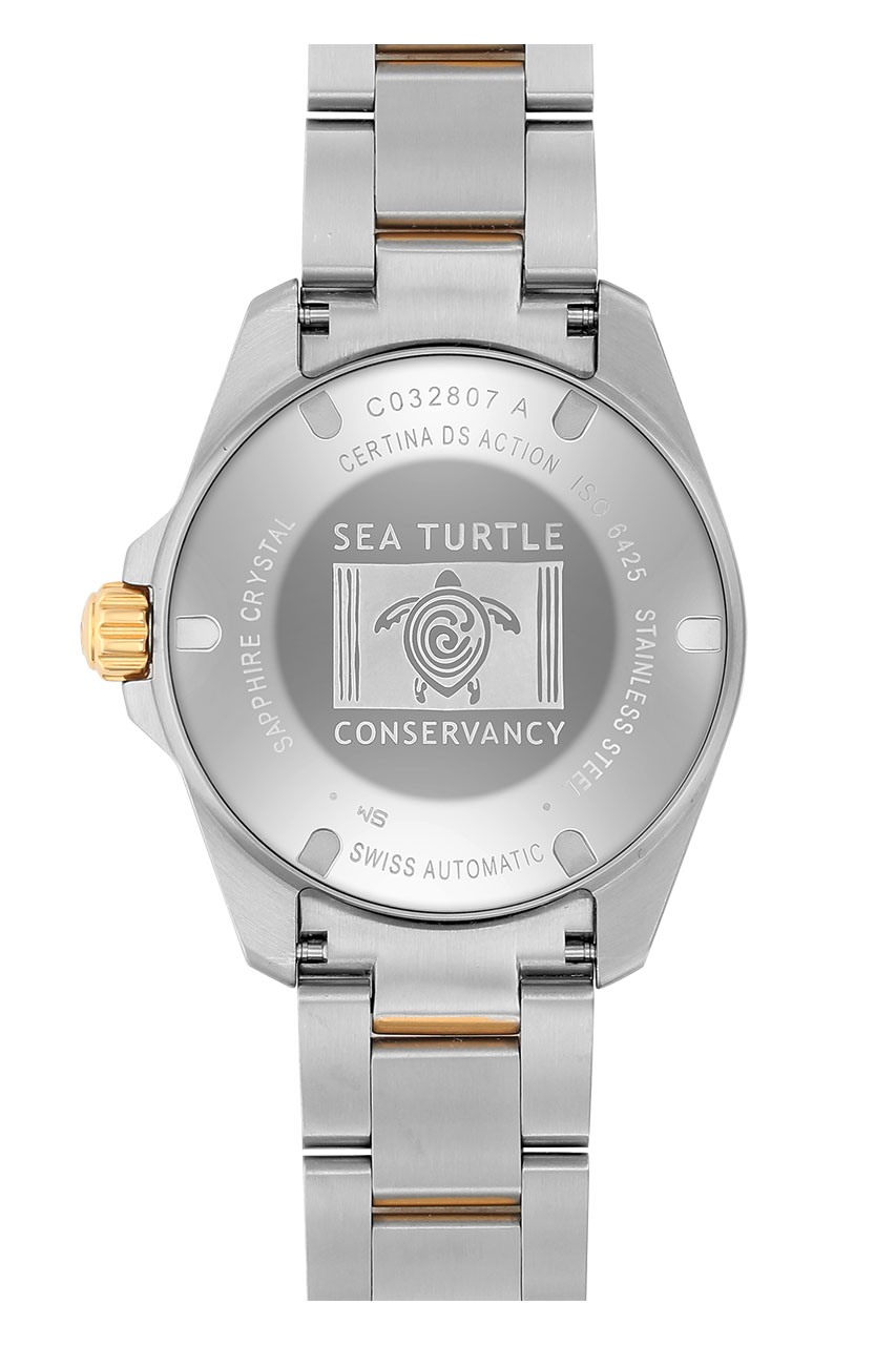 Швейцарская часовая марка Certina посвящает новую, специально разработанную модель часов своему партнерству с Sea Turtle Conservancy (STC). Новинка этого года – DS Action Diver Sea Turtle Conservancy. Это стильные часы для дайверов с пружиной баланса из материала NivachronTM, обладающего антимагнитными свойствами, и логотипом STC на задней крышке корпуса. Особое значение имеют не только часы, но и их упаковка. Впервые в истории компании Certina футляр изготовлен полностью из перерабатываемых материалов.