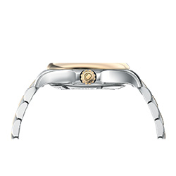 Эти часы – образец универсальности. Круглый корпус из нержавеющей стали диаметром всего 34,5 мм заключает в себе всю мощь современного швейцарского часового искусства. В дизайне использованы классические элементы: бриллиантовые часовые отметки, фасетированные стрелки, циферблат с перламутровой отделкой или гильоше «Солнечные лучи» в сочетании с современными цветовыми комбинациями. Среди них полированная нержавеющая сталь с акцентами цвета розового или желтого золота, универсальный черный или благородный коричневый. Плотно прилегающий металлический браслет с пятью рядами звеньев, застежкой-бабочкой и кнопками комфортно и стильно обхватывает запястье.