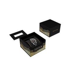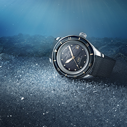 Ремешок и упаковка часов выполнены в экологически ответственном ключе. Антрацитовый синтетический ремешок изготовлен из материала #tide ocean material®. Название говорит само за себя: пластиковый мусор, собранный в океане, перерабатывается в прочные и высококачественные ремешки для часов. Часы поставляются в черно-золотой упаковке, изготовленной из экологичного картона, легко поддающегося переработке.