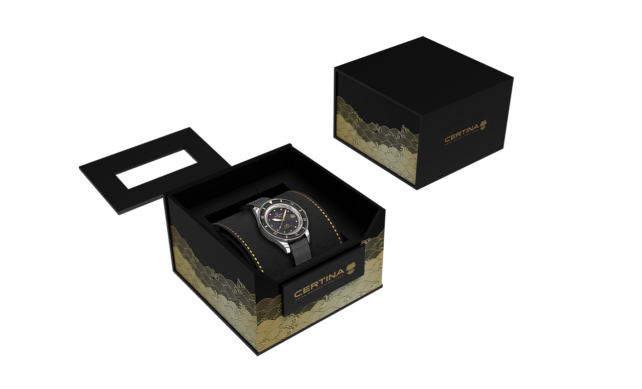 Подписчики марки в социальных сетях с особенным трепетом ждали презентации новой модели: уникальный международный конкурс позволил им повлиять на дизайн новых часов Certina. В течение двух недель ценители часового искусства со всего мира имели возможность выбирать между различными элементами дизайна: варианты исполнения безеля, циферблата, стрелок, ремешка и даже упаковки были выставлены на голосование. Получившийся дизайн оказался одновременно изысканным и ярким. Часы диаметром 39 мм заключены в круглый корпус из нержавеющей стали с переливающимся черным перламутровым циферблатом и одиннадцатью бриллиантовыми часовыми отметками. Функциональные особенности модели включают указатель даты на отметке «3 часа», завинчивающуюся заводную головку и однонаправленно вращающийся безель из черной керамики, устойчивой к появлению царапин. Безель и стрелки цвета розового золота имеют акценты из люминесцентного материала Super-LumiNova®.
