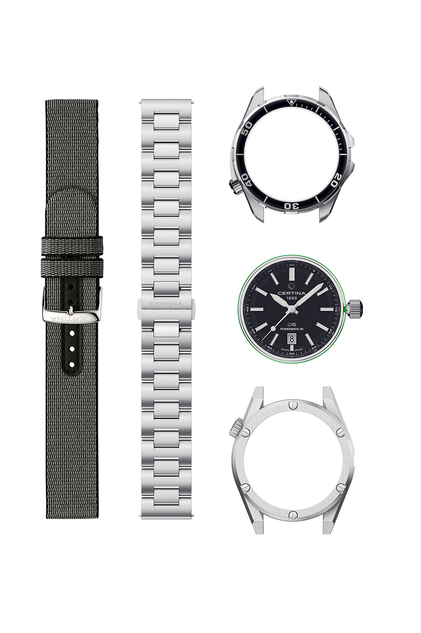 Модель DS+ представляет новую концепцию от Certina: часы с возможностью выбора не только ремешка, но и формы корпуса для создания кастомизированного аксессуара. Выберите спортивный или винтажный образ, стиль для города или отпуска. Благодаря уникальной трехмодульной конструкции вы можете легко изменить дизайн часов – без использования инструментов и всего за несколько шагов – чтобы соответствовать выбранному образу. При этом надежность, прочность конструкции и точность автоматического калибра Powermatic 80 с пружиной баланса Nivachron™ остаются неизменными. Certina продолжает переносить динамично меняющийся стиль на ваше запястье, создавая модели, которые во всех отношениях представляют собой больше, чем просто часы.