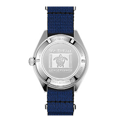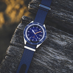 Синий текстильный ремешок выполнен из материала #tide ocean material®, изготовленного на основе океанического пластика. Футляры для часов произведены из полностью перерабатываемых материалов, таких как органический хлопок, а для подушечек используется переработанный полиэстер.