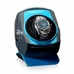 Space выделяется лаконичным, но выразительным дизайном. Корпус из высококачественного пластика в насыщенном синем цвете дополнен прозрачным смотровым окном, позволяющим любоваться часами в движении. Удобная функция Auto-Stop останавливает вращение при открытии окна, обеспечивая легкий доступ к часам в любой момент. Гибкие настройки вращения — от 320 до 7680 оборотов в день, с возможностью выбора направления (по часовой, против или чередование) — гарантируют совместимость с большинством механизмов.