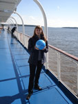 Программа нашего путешествия была серьёзной и насыщенной, но и на отдых осталось время. В середине плавания мы причалили на зелёную стоянку в очень живописном месте. Организаторы подготовили для нас конкурс Мистер и Мисс ULYSSE NARDIN. Я приняла в нём самое активное участие - пары соревновались в знании бренда, астрономии, были и забавные конкурсы. Одним из заданий было сочинить стихотворение про ULYSSE NARDIN, и чем больше в нём будет часовых терминов, тем больше очков заработает пара. В итоге наша пара заняла почётное второе место. В награду достался прекрасный астрономический глобус.