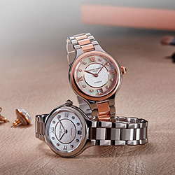 4. Frederique Constant Classics Delight Automatic FC-306MC3ER2B Корпус из полированной нержавеющей стали с розово-золотым гальваническим покрытием безеля. Циферблат с отделкой серебристым перламутром по цифровому полю и серебристым узором гильоше по центру. Воронёные центральные стрелки и чёрные печатные римские цифры, прямоугольное окошко даты. 3-рядный браслет из нержавеющей стали с розово-золотым гальваническим покрытием центральных звеньев. Раскладывающаяся стальная застёжка с розово-золотым гальваническим напылением. |