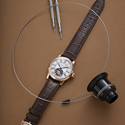 Более того, именно Classics Heart Beat Manufacture были оснащены первым мануфактурным механизмом, разработанным внутри компании в 2004 году — калибром FC-910 Heart Beat Manufacture, тогда еще выпускавшимся с ручным подзаводом. Нет ничего удивительного и в том, что на циферблате этой модели располагалось знаменитое окошко, впервые появившееся в коллекции 1994 года, через которое можно было увидеть бьющееся сердце часов — их спусковой механизм. Спустя несколько лет этот калибр усовершенствован и получил название FC-930, став первым мануфактурным калибром с автоматическим подзаводом.